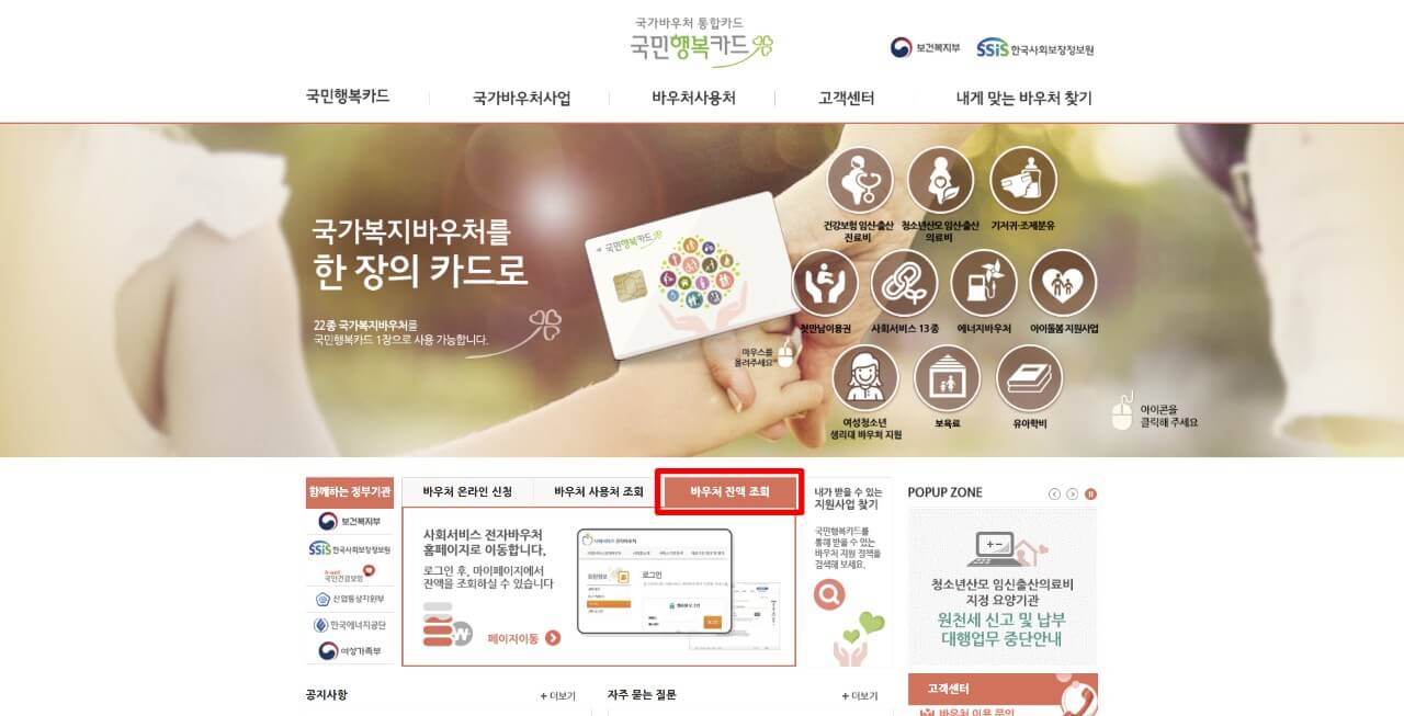 2. 국민행복카드 잔액조회 방법 (홈페이지)
